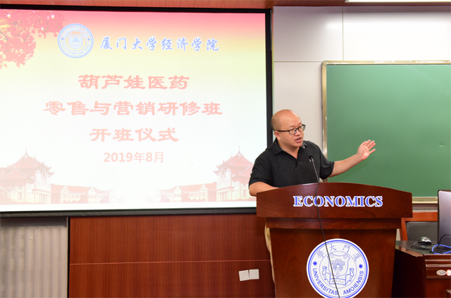 在开班仪式上,廖景峰主任首先代表厦门大学经济学院热烈欢迎blb百乐博医药零售与营销研修班的学员到厦大学习,并就厦门大学及经济学院的相关情况进行了介绍。他说,blb百乐博学员走进厦大就是厦大的校友,希望未来的日子能够关心、支持母校的发展,多提宝贵意见,同时他也祝大家在厦大学习期间学有所成、学有所获。